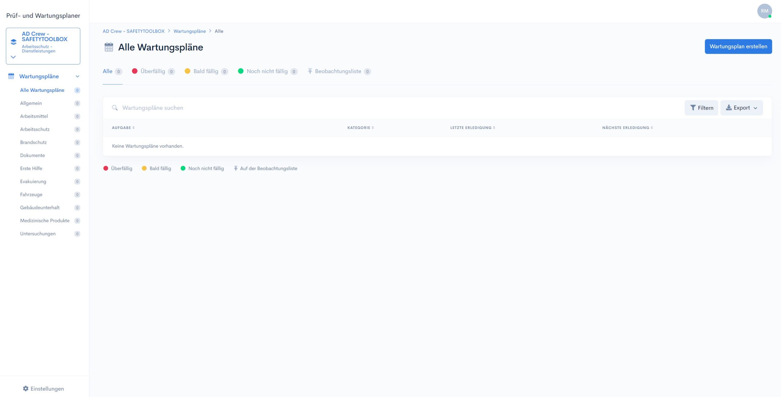 AD-Crew Prüf-Wartungsplaner (Online) komplette, einfache und schnelle Handhabung