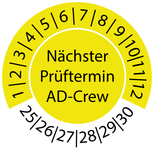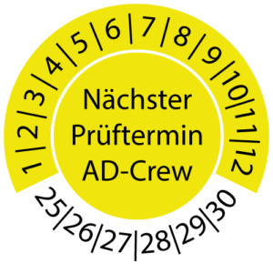 Arbeitsschutz, Arbeitssicherheit, Prüftermin AD-Crew