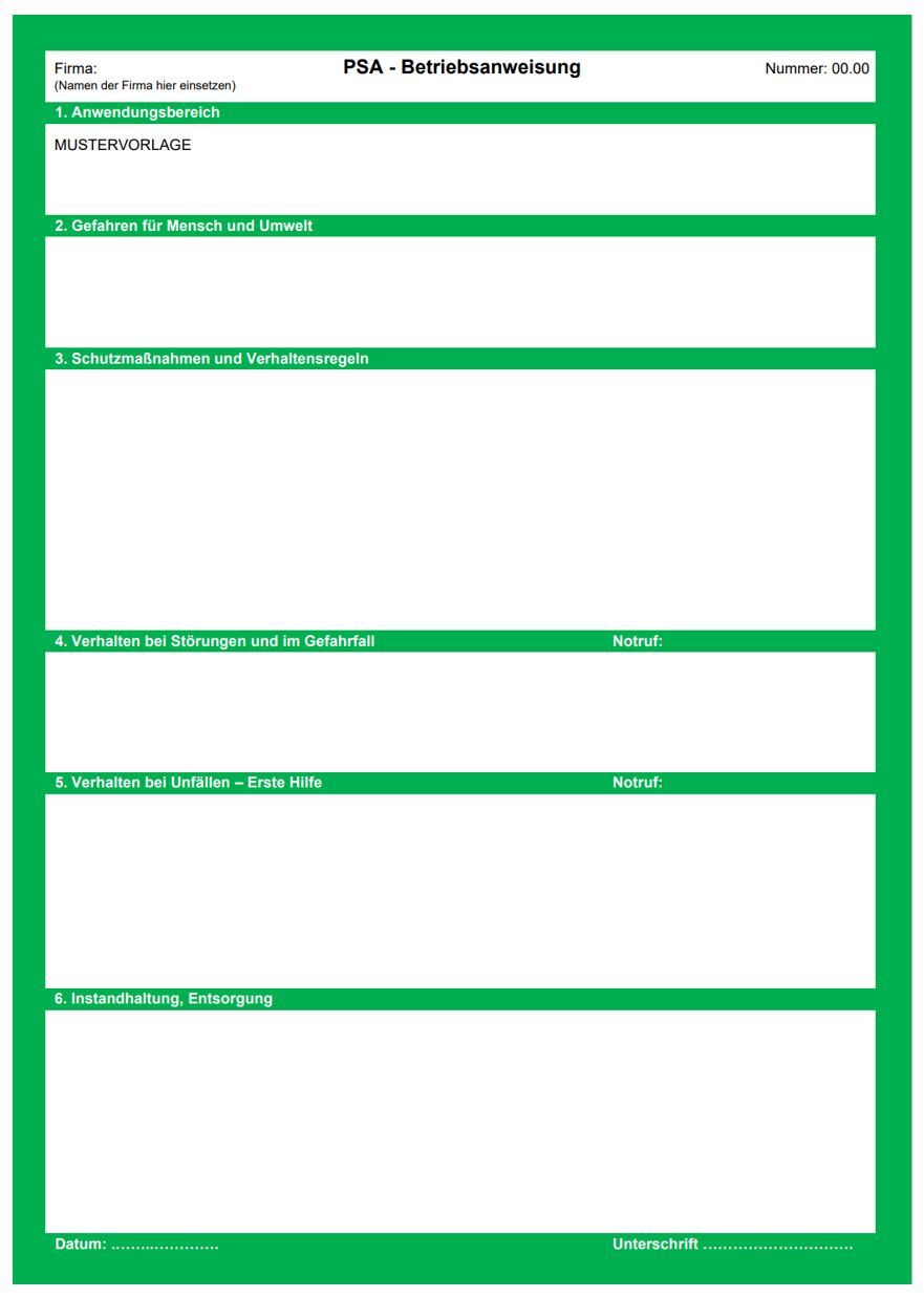 Betriebsanweisungen für Persönliche-Schutzausrüstung