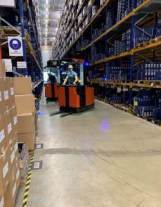 Gabelstaplerfahrerschulung im Hochregallager; FFZ, Stapler